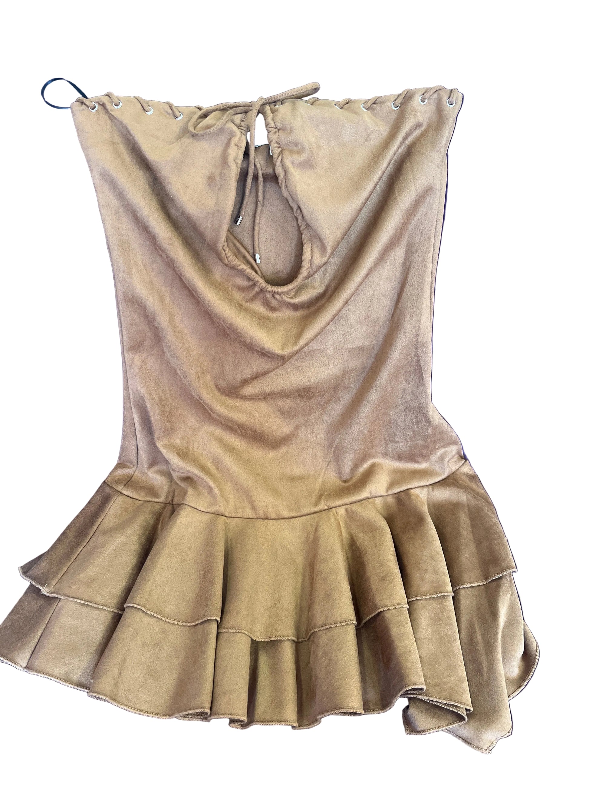 “Caramel Kiss” Suede Ruffle Mini Dress