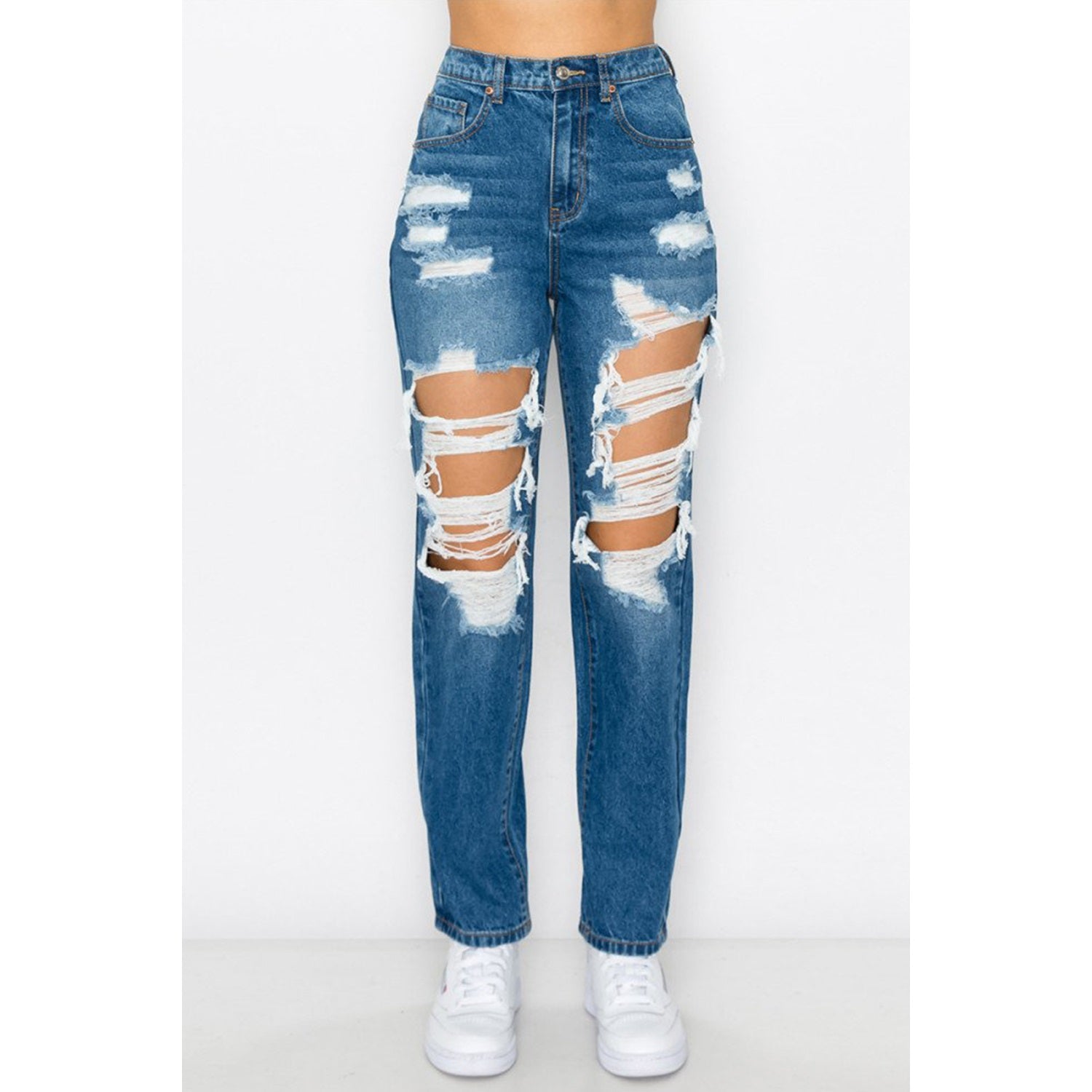 The Not Mom Jeans are the perfect blend of style and comfort. With a blown-out rigid elastic waistband, these jeans offer a comfortable fit that is perfect for all-day wear. The mom jean style gives a nod to classic fashion, while the blown-out design adds a touch of edge to the look. Whether you're running errands or dressing up for a night out, these jeans are sure to become a staple in your wardrobe. The rigid elastic waistband ensures a secure fit, while the blown-out design adds a touch of vintage charm. Get ready to turn heads with the Not Mom Jeans.