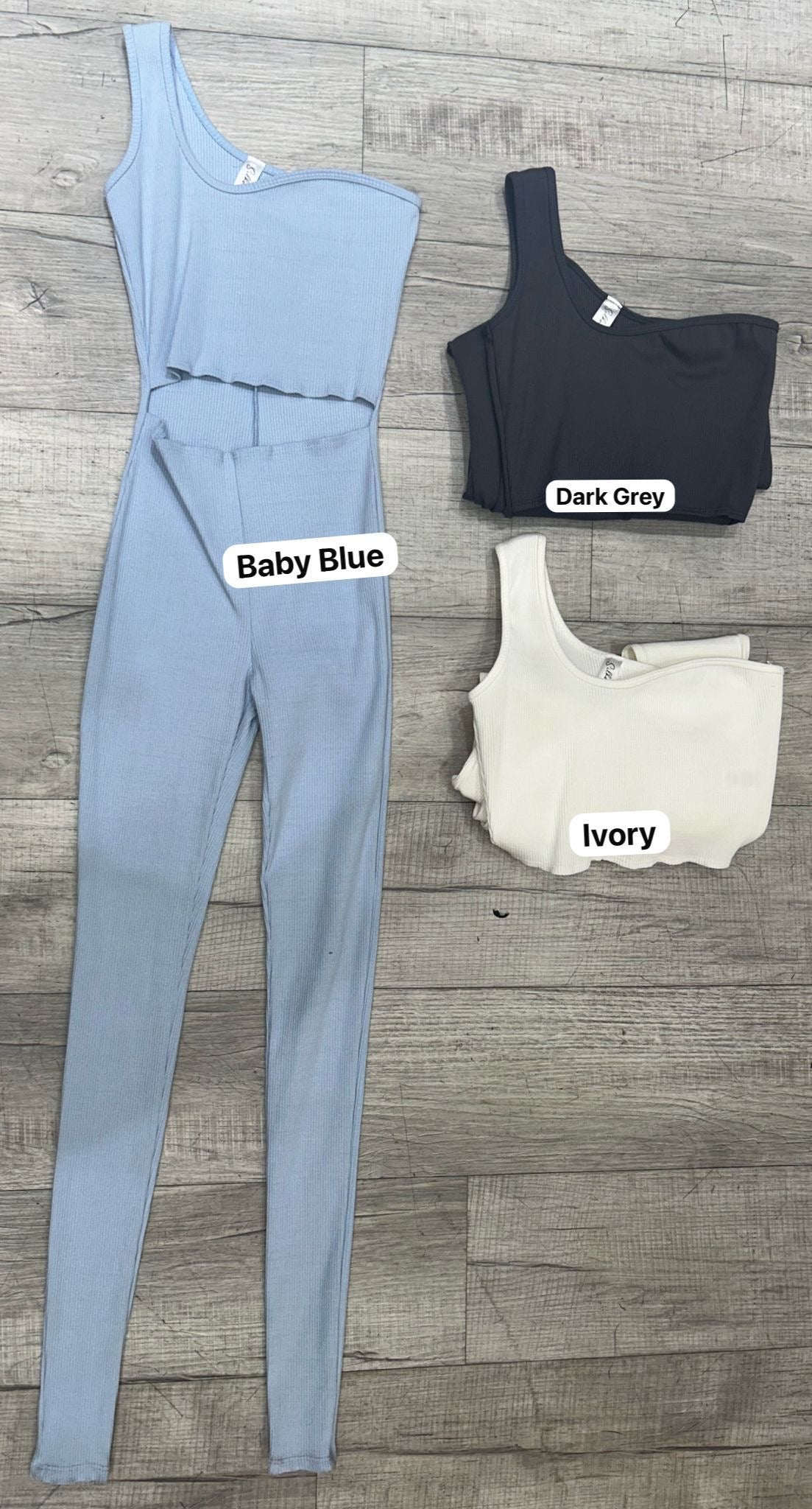 Baby Blue, Dark Grey, Ivory